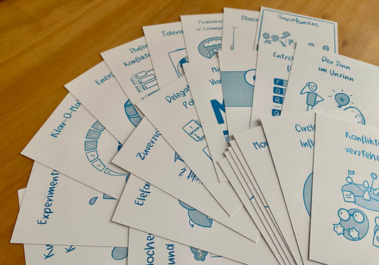 Egal, ob in Meetings, Workshops oder der sonstigen Teamarbeit: Mit unseren Produkten bringst und frischen Wind in deinen Arbeitsalltag. Sie ermöglichen es dir, neue Impulse zu setzen rund um Meetingeffizienz, gelungener Teamarbeit und effektivem Selbstmanagement. Sie ermöglichen es dir, gute Fragen zu stellen und einfach mal was Neues auszuprobieren.